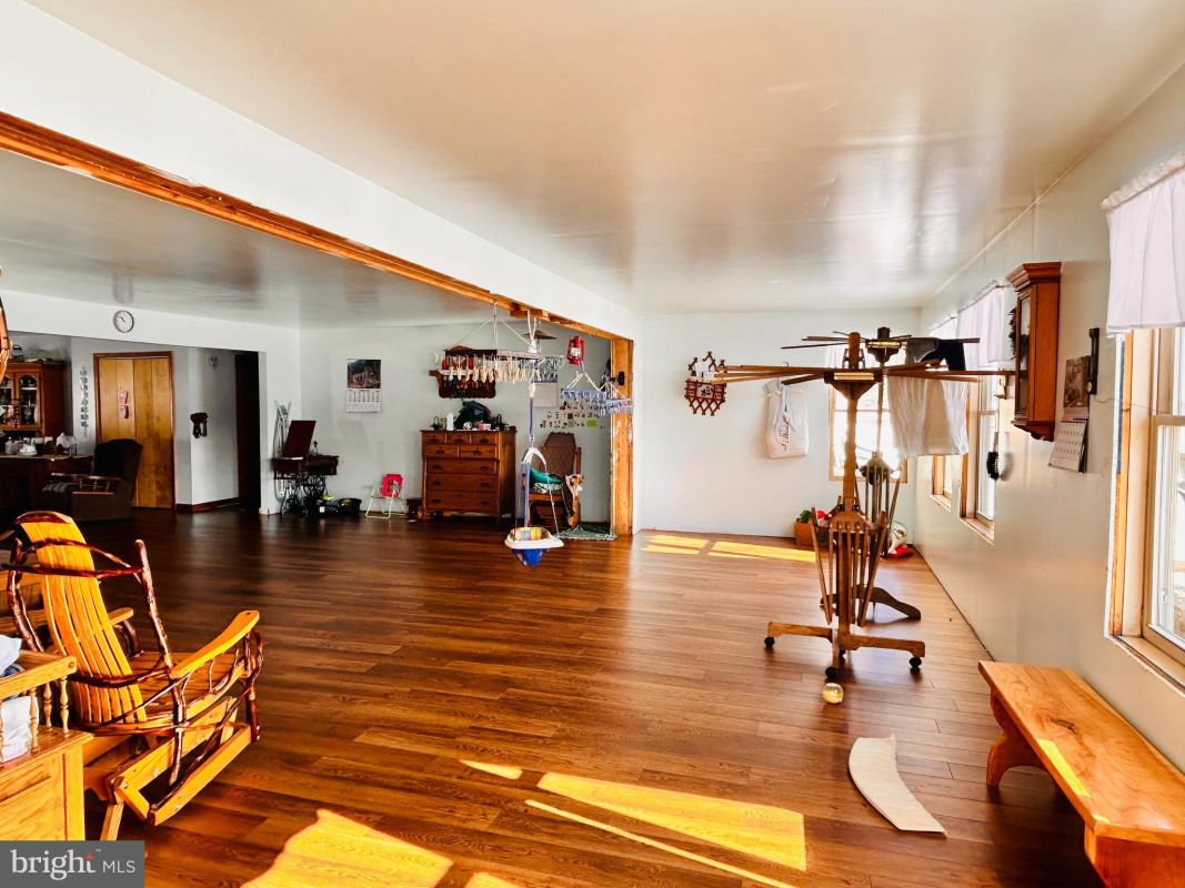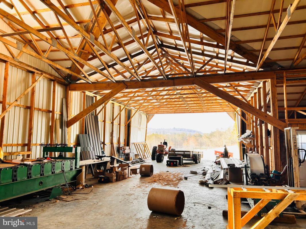 Glorious farmette with gorgeous views, fence pastures, partially wooded area and enormous 6200 sq foot pole building! This ranch home is spacious with a primary suite with full bath and walk in closet. Kitchen/dining area has potential for a large island and more cabinetry. Living room overlooks the pasture areas and wooded section of the property. Electrical, HVAC, plumbing and garage door still intact and easily reconnected. Furnace still remains as well. 30 acres of fenced in pasture areas currently used for sheep and horses. 15 wooded acres recently select cut but have other trees that remain which could be select cut or for future harvest. Huge pole building has a loading dock, metal roof and is ready for workshop, garage, storage or business. Extra high doors allow for large trucks or RVs. Property has a spring which is piped to the pasture areas. Family room has the mechanical closet and garage door remains. Garage shed for another parking spot or storage.