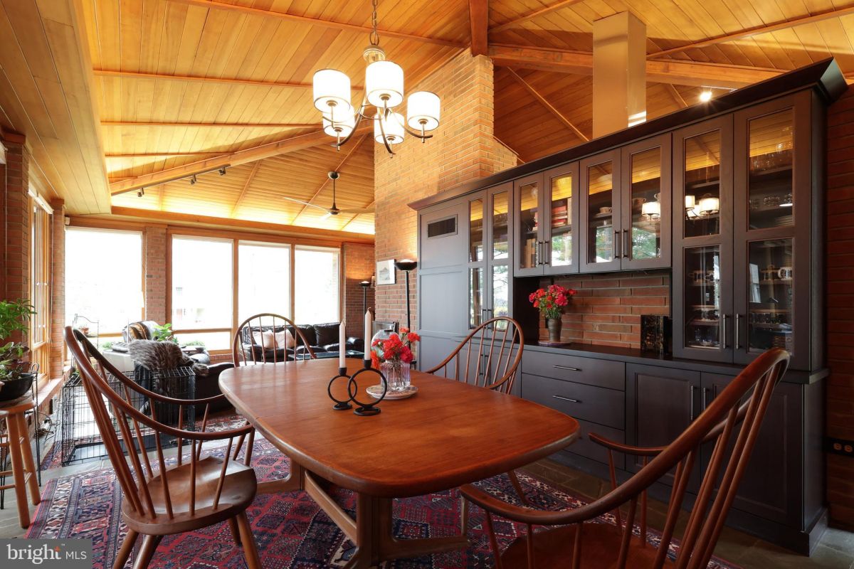 There are homes that stay with you long after you've walked through, where the exquisite architecture lingers in your mind and excites your imagination; 219 Ronan Drive is one of those homes! This incredible Frank Lloyd Wright-inspired mid-century contemporary home is nestled on just over a half-acre private lot in Everhart Village and sits one property in from the Clearwater Conservancy land tract preserving the beautiful mountain views. Step into the welcoming foyer with exposed brick, slate floors, a large coat closet, and built-in shoe cubby drawers, setting the tone perfectly for the rooms to come. The incredible open floor plan winds through the main living area with breathtaking high angled wooden ceilings, and walls of windows that invite the outdoors in. Spend cozy nights in the chic living room featuring a pellet stove with mantle made from an old ship's hull model, slate floors, walls of windows, gallery rail all around, and elegant lighting that highlights the incredible ceilings and design. A fabulous home for entertaining, you'll love preparing meals for your guests in the wonderful Ed Satalia designed kitchen with butcher block island, slate floors, SS appliances, 6 burner Thermador propane stove with hood, double wall ovens, large subzero fridge, easy roll drawers with cool built-in storage for silverware, beautiful wood cabinetry, roll-out pantry closet, a built-in pizza oven (current owner has not used this feature), and incredible windows that overlook the backyard. You'll appreciate the additional space of the butlers pantry/mudroom just off of the kitchen, featuring cabinetry and a deep closet. Share everything from holiday feasts to weeknight favorites in the elegant dining room, with built-in sideboard, perfect for lingering conversations with your favorite people. You'll love curling up with a good book or working from home in the spacious corner office with huge windows, hardwood floors, door to the front deck, and ample space. This flexibility allows the room to serve as a family room, office, or art studio. Steal away to the primary suite addition. Found off the office, this private space features high ceilings, hardwood floors, a sitting area with door to the back patio, walk-in closet, and a lovely private bath designed by Ed Satalia with a freestanding soaking tub perfect for the end of a long day, a walk-in tile shower, and beautiful double vanity with towel closet. Four additional bedrooms and a full bath can be found in the opposite wing creating lovely privacy. Three nicely sized bedrooms with hardwood floors and one smaller bedroom with a skylight (great for an office) share the cool full hall bath. This bath features, a sauna, slate floors, a laundry chute, a large vanity, and a big soaking tub with a tile surround. A small half bath, with cute corner sink, completes the main floor. Downstairs you'll discover a flex space great for hobbies with a dance floor and dance mirror, storage, a nice laundry closet, and access to the two car garage. Outside you'll find a fabulous PA woodland with mature trees, stunning perennial plantings, a beautiful stone patio great for sunny afternoons and a pitcher of lemonade, a fire ring area, the beautiful newer front deck, and the delight of many birds and animals that call the trees home. Located in close proximity to the YMCA, high school, shopping, and a quick commute to campus, you'll love the location of this desirable neighborhood. Come take a look today to experience this truly exceptional home, you won't want to miss it!