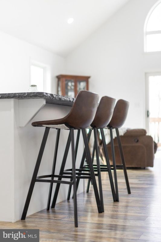 This custom-built gem greets you with a spacious entry hallway and an inviting living and dining area with a soaring cathedral ceiling. Step outside onto the expansive deck, an ideal spot for outdoor gatherings and relaxation. The kitchen is a chef's delight with a large island featuring an overhang for casual seating, complemented by sleek stainless-steel appliances, concrete counters, and high-quality LVP flooring.