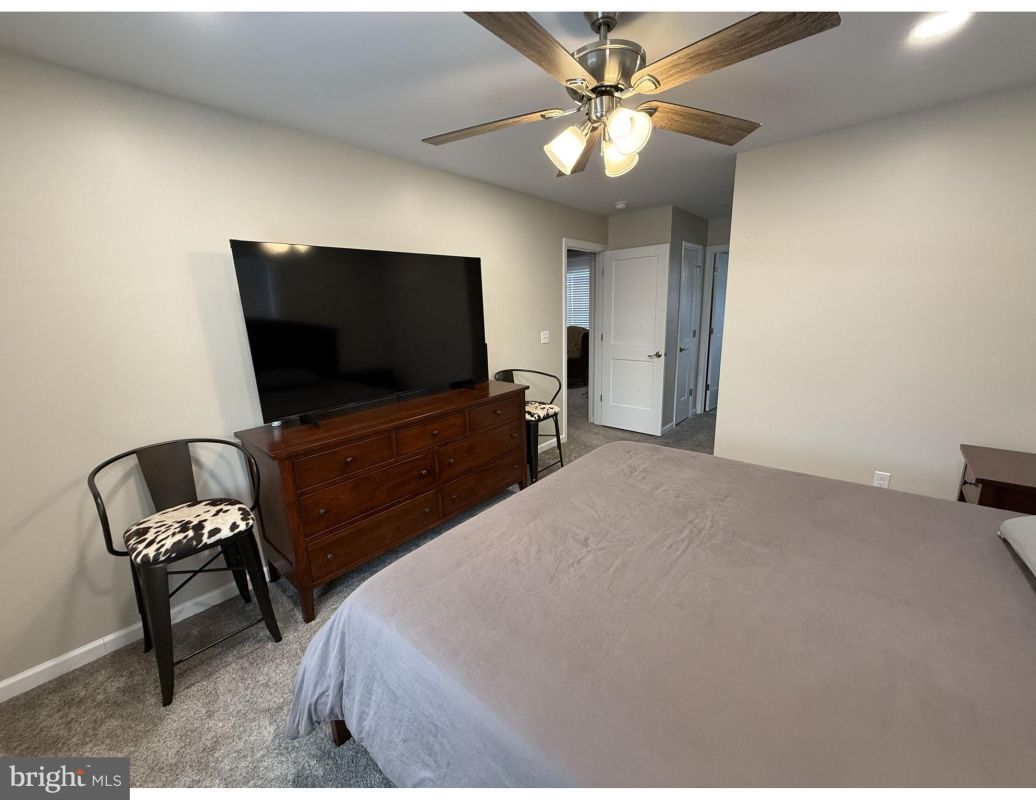 Upstairs, the owner’s suite includes a walk-in closet and en-suite bath with a walk-in shower, quartz vanity, and ceramic tile flooring. Two additional bedrooms share a full bath with a tub/shower combination and 3/8-inch glass doors. Both bathrooms feature Bluetooth speaker/light fixtures for a modern touch.