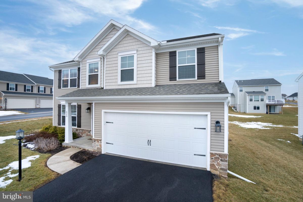 Welcome to 620 Fawn Valley Road, a beautifully maintained home set on a desirable corner lot in the sought‑after Nittany Glen community. This 2‑story home showcases the thoughtful design and livable flow the Burberry floorplan is known for, offering 4 bedrooms, 2.5 baths, 2,186 sq ft, and a full unfinished basement for future expansion or abundant storage. From the moment you arrive, the inviting front porch and manicured landscaping create standout curb appeal. Step inside to a bright foyer that opens to a dedicated office with French doors, ideal for remote work or a quiet retreat. A convenient half bath sits nearby. The main level features LVP flooring throughout and an open‑concept living, dining, and kitchen combo that makes everyday living and entertaining effortless. The kitchen blends style and function with white shaker‑style cabinetry, polished dark granite countertops, a dedicated pantry, and glass sliders leading to the back deck. A first‑floor laundry room and mudroom connect directly to the oversize 2‑car garage. Upstairs, a spacious and airy family room offers great flexibility. Three bedrooms and a full bath sit on one side of the family room, while the expansive primary suite enjoys its own private wing. The suite includes its own bath with a glass‑enclosed shower and a generously sized walk‑in closet. The full, unfinished basement offers endless potential—home gym, workshop, storage, or future finished living space! Nittany Glen offers quiet, walkable streets, a strong community feel, and convenient access to shopping, dining, and downtown State College. With its modern layout, thoughtful upgrades, and standout lot, this home is truly move‑in ready. See it today!