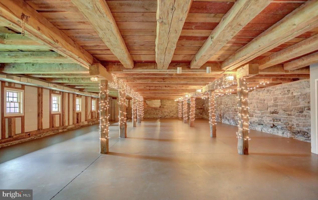 The crown jewel of the property is the beautifully restored 1830s bank barn—an extraordinary venue space designed for effortless hosting of up to 200 guests. The upper level boasts soaring exposed beams, original wide-plank flooring, an open loft, band/DJ-specific power, ambient lighting, and year-round climate control. Below, the lower level is perfect for cozy receptions and intimate ceremonies, featuring expertly repointed stone walls and a warm, inviting atmosphere. Double doors lead directly to the barnyard, offering seamless flow for indoor-outdoor celebrations.