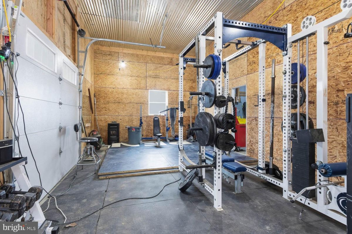 pole barn complete with concrete flooring, 14-foot ceilings, an oversized, overhead door perfect
