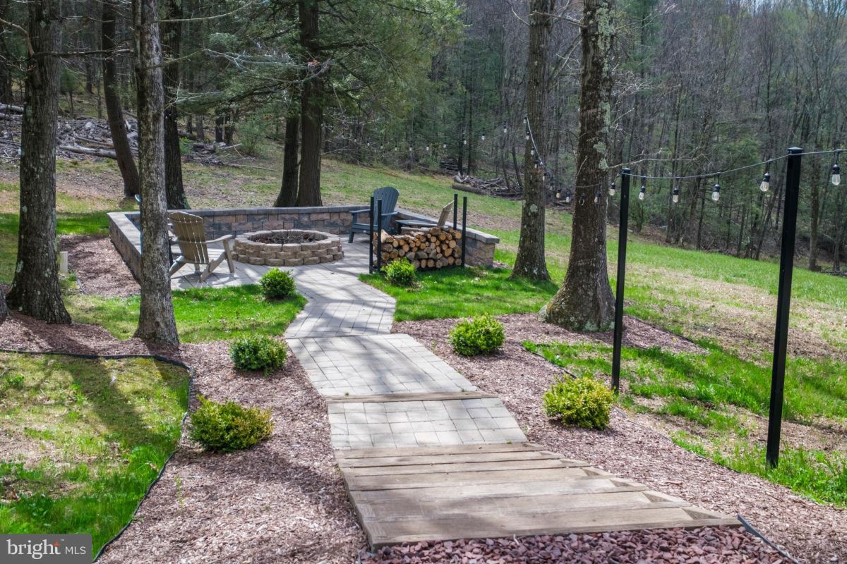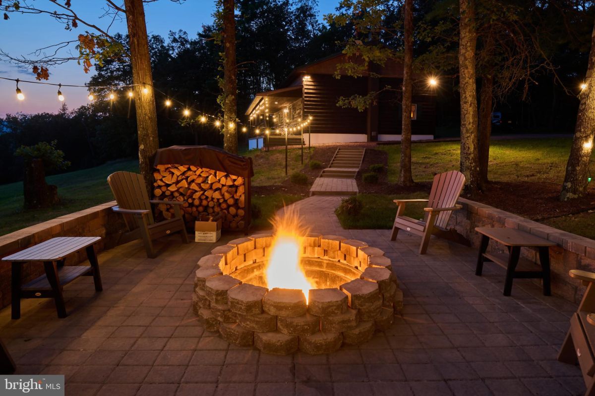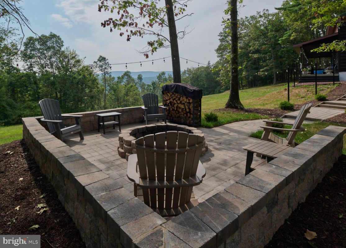 Step outside and the setting becomes the focal point. Elevated views overlook rolling ridges and wooded valleys, while a network of established trails runs throughout the 190-acre parcel, making it easy to access different sections of the land for hunting, hiking, or ATV use. A fire pit area and outdoor gathering space create a natural extension of the home.