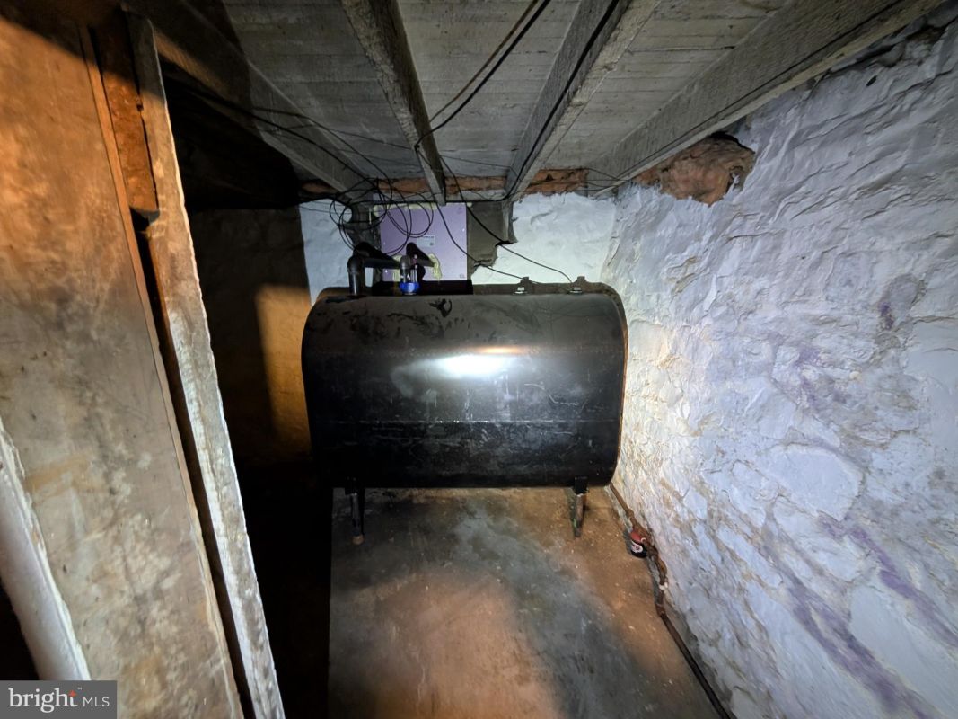 Warriors Mark 2 story vinyl home features large eat-in kitchen, formal living and dining rooms, den, half bath and first floor laundry. Upstairs you will find 4 bedrooms and 1 full bath (one bedroom is captive and one has no closet). Additional features include walk-up attic for storage, large storage shed, off-street parking and fenced rear yard. AS-IS sale, seller will make no repairs. On-lot sewage system present; type and operational status are unknown.