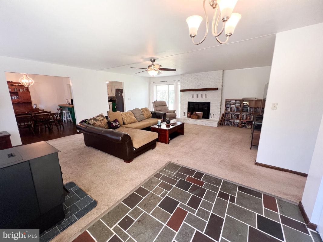 Welcome to this gorgeous 4-bedroom, 2.5-bath ranch home nestled in the desirable Shawnee Hills Development. This beautiful property features an expansive living room with a charming wood-burning brick fireplace and a brand-new pellet stove, perfect for cozy evenings. The updated kitchen flows into a formal dining room, ideal for entertaining.