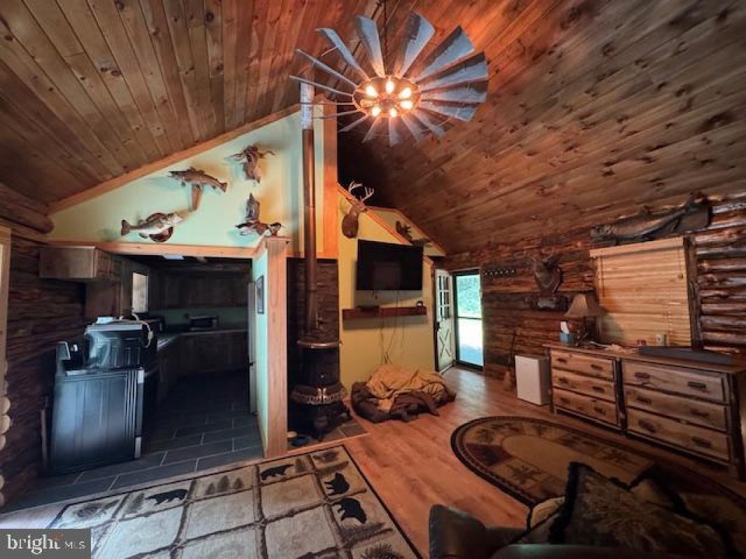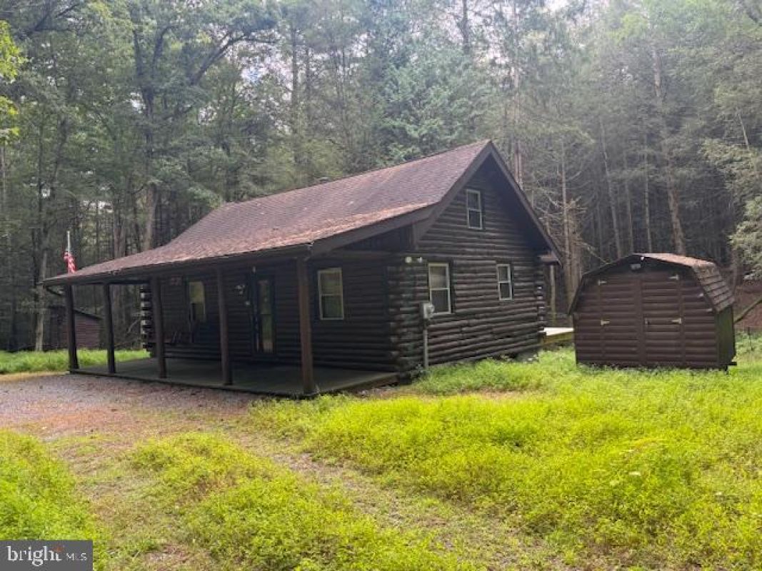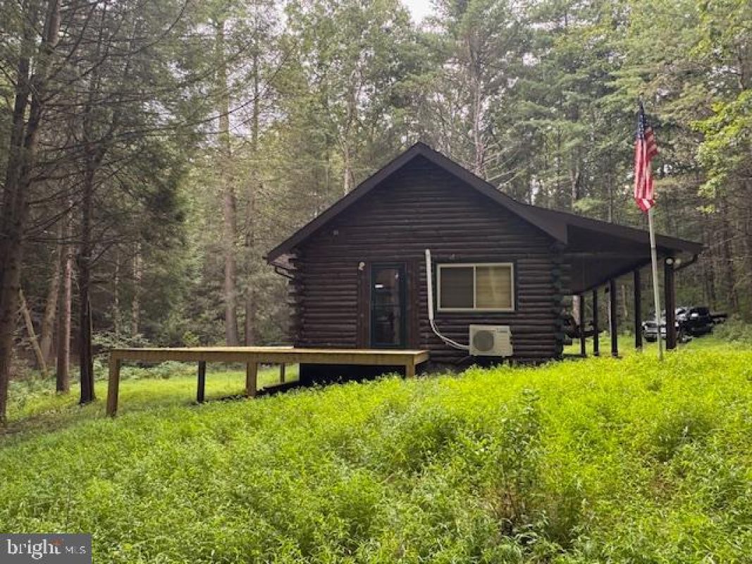 Camp Wolf Den #5-C-213 on leased DCNR Campsite on Rothrock State Forest in Coopers Gap. Log structure built 1990. Main level has living/dining with cathedral ceiling and woodstove, kitchen with appliances, and private bedroom. Second level is an open sleeping loft. 100-amp electric service allows all the conveniences of home, including a ductless mini-split for ultimate comfort. There is a large covered front porch, open rear deck, utility shed and outhouse/pit privy with electric. All furnishings are included. Located just minutes from US 322. Cash only, leased campsites are not financeable and purchaser must be a PA resident and not named on another existing leased campsite.