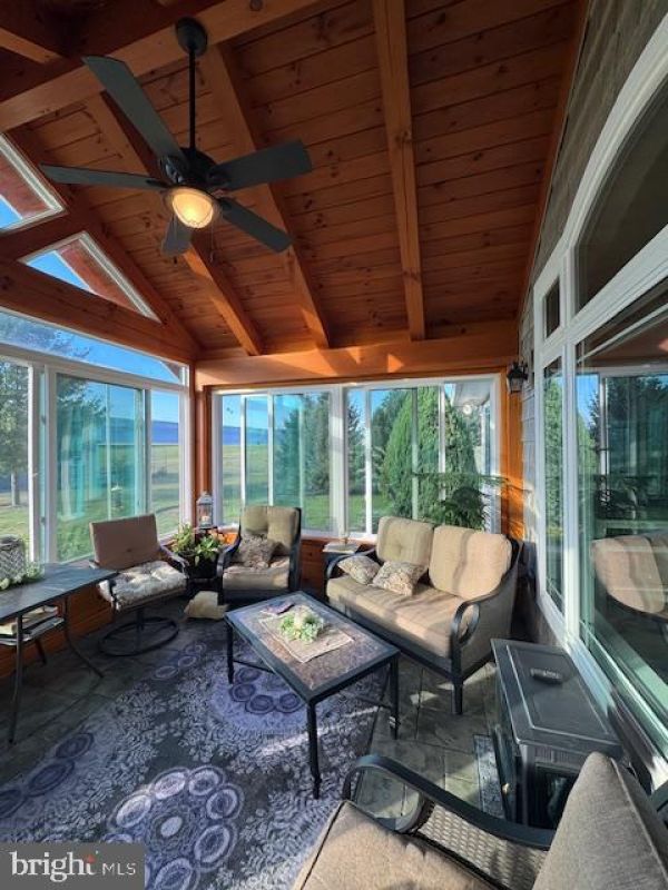 Discover an exquisite blend of luxury and comfort in this stunning 4-bedroom, 3.5-bathroom ranch-style home, nestled on a sprawling 1-acre lot in a serene rural setting. Built in 2014, this meticulously maintained residence boasts high-end finishes and an open floor plan that invites natural light to dance across the elegant hardwood floors. Step inside to find a kitchen equipped with stainless steel appliances, including a built-in microwave, quartz counters and soft close custom cabinets from Big Valley Cabinets. Perfect for culinary enthusiasts. There is even a breakfast nook with views of the neighboring farm and distant mountains. The spacious living area features a cozy gas fireplace, cathedral ceiling with generous recessed lighting, creates an inviting atmosphere for gatherings. The entrance foyer has tile floor and high ceiling with transom window. The adjacent formal dining room features detailed millwork, double tray ceiling, recessed lights and transom window. Off the kitchen and living room is a spacious timber-frame 3 season porch. Originally open air it was converted with insulated glass windows, doors and a stamped concrete floor. This is bound to be your favorite room for watching the sunrise with a hot beverage! Retreat to the primary suite, complete with a spacious bathroom featuring both a 5' stall shower w/glass doors. A first floor laundry/half bath is conveniently located. Descend the open, oak staircase to the finished basement. A massive family room has multiple alcoves that are open to your imagination as areas for gaming, crafting, study, man-cave, etc. There is a small kitchenette that can be expanded. Also, the basement contains a cozy private bedroom and full bath. A great space for in-laws, extended family or other overnight guests. The mechanicals are top notch with on-demand tankless hot water heating, high-efficiency heat pump with propane back up heat, quality electrical service, ManaBloc plumbing system and more. The exterior is equally impressive, showcasing a charming blend of vinyl shake and stone siding, complemented by mature and tasteful landscaping. There is a shed/workshop with electric for additional storage. Enjoy breathtaking panoramic views of the mountains and valleys from your private rear yard, ideal for outdoor entertaining or tranquil evenings under the stars. With an attached 2-car garage and ample driveway space for guests, convenience is at your fingertips. This property offers a unique opportunity to embrace a luxurious lifestyle in a peaceful setting, where every detail has been thoughtfully curated for your enjoyment. Experience the perfect harmony of elegance and nature-your dream home awaits!