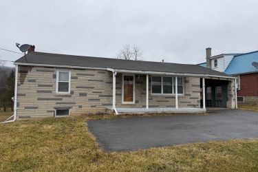 3+Bedroom Stone House( Stucco Over Stone),1 Bath Large walk through attic. 2 Fireplaces, only one working. Flue in basement for coal or wood stove. Oil Heat hot water boiler, electric hot water heater, electric oven/stove. Butlers pantry/Laundry room, Sunroom/porch , good size office,/exercise room. 2072 Sq. Ft. Half wrap deck around side and back, Metal roof, no leaks 15 years old with insulated panels in attic, Municipal water, septic tank. Large 2+ car garage, good size wood frame shed, 0.67 Acres lot. Beautiful view of Mountain from back yard. Asphalt drive owned by property, gentleman's right of way for neighbor's entrance to their home. Full frontal covered porch. Beautify this home by removing stucco and repointing stone!